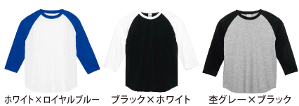 3/4スリーブのラグランTシャツはファッション性の高いオリジナルプリントウェアになります。
